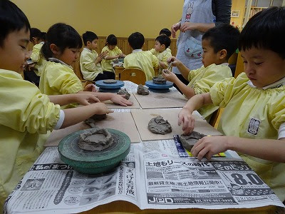 ふじ組さんが卒園記念品のお茶碗を作りました。